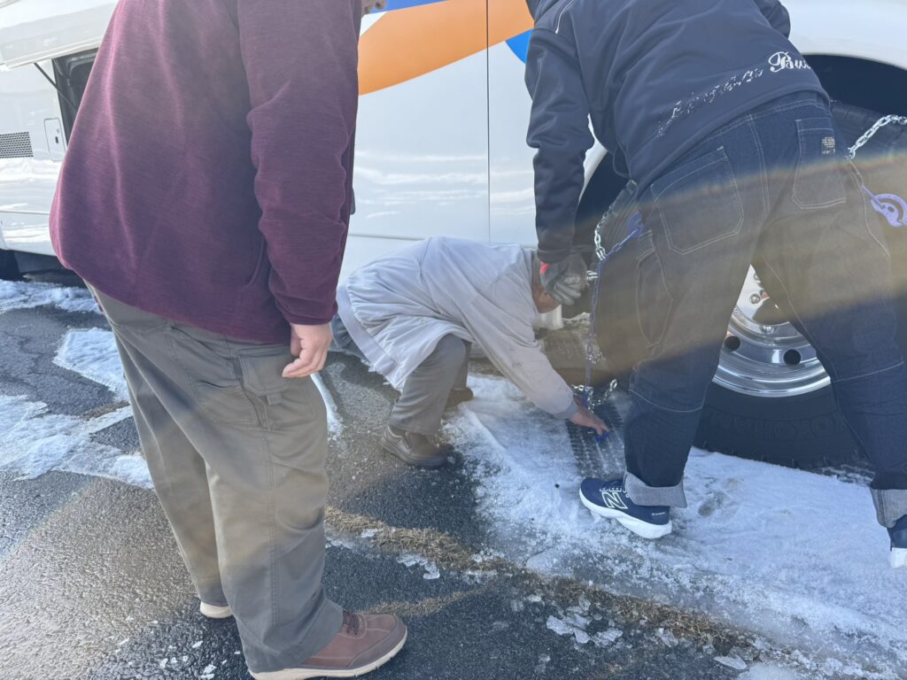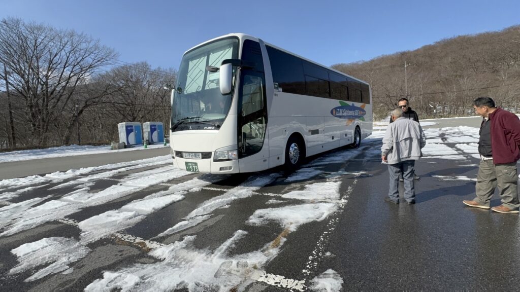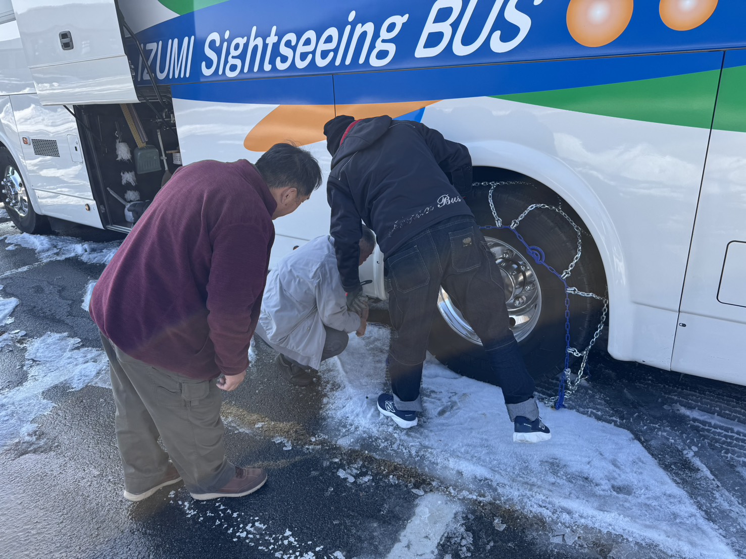 雪道研修及び非常用、非常用具、非常口取扱についての研修を実施しました 2026 2/06 Information 2026年2月6日2026年3月26日 2026年1月18日(日)場所:那須高原駐車場 今回は初めて2社合同で研修を行いました。チェーン確認や実際に走行した時、非常口から脱出方法などを実施訓練を行いました。 Information